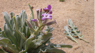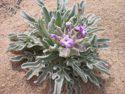 Trata-se de uma planta rara, que tem vindo a escassear em muitos locais do litoral europeu, principalmente devido à destruição dos seus habitats. É exatamente o que se passa no que diz respeito às costas marítimas da Praia da Areia Branca pois encontrei apenas 2 exemplares desta espécie, ambos situados na orla do caminho que conduz às dunas. Sem querer ser pessimista antevejo poucas hipóteses de aumento do número de indivíduos uma vez que este caminho é frequentemente utilizado por jipes e condutores de motoquatro que se passeiam livre e impunemente e a alta velocidade pelas dunas, por caminhos ou fora deles, destruindo umas espécies e mutilando outras.