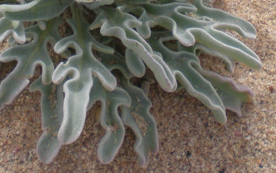 As folhas, dispostas em roseta, são numerosas. Para sobreviver no meio adverso das dunas certas plantas sofreram modificações morfológicas, anatómicas e fisiológicas ao nível foliar. No caso desta espécie, as folhas estão cobertas por um indumento de pelos esbranquiçados que ajudam a refletir a luz o que dá à planta um aspeto aveludado e um tom cinzento- azulado.