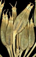 O fruto é arredondado, mais largo que comprido e com o vértice achatado.