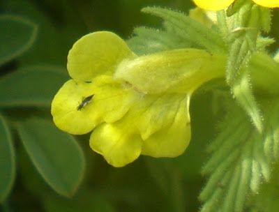 As folhas são ligeiramente peludas e apresentam várias formas. As inferiores são mais ou menos divididas, com lóbulos pontiagudos, toscamente dentados, com o segmento terminal arredondado e muito maior do que os laterais, os quais diminuem gradualmente de dimensões na direção da base da folha. As folhas superiores são geralmente dentadas, mas inteiras.