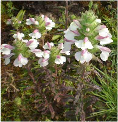 As flores do capitulo da Centaurea sphaerocephala são tubulares e em tons rosa e púrpura.