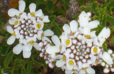 As Iberis procumbens microcarpa distinguem-se bem pelas suas flores brancas, com apenas alguns laivos de lilás.