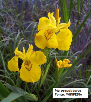 | A Iris pseudacorus é frequente nos nossos rios e pauis. Pode adaptar-se às condições de bordadura mas a sua verdadeira beleza revela-se quando plantada nos lagos. Hoje em dia esta planta está a ser utilizada para purificar águas poluidas pois as suas raizes consomem os poluentes geralmente resultantes dos excessos quimicos na agricultura, sem prejuizo aparente para a planta. Foto de Stahlkocher |