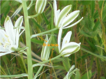 Cada flor nasce na axila de uma bráctea a qual pode ter o mesmo tamanho dos pedicelos ou até ser mais curta ou mais comprida que os mesmos.