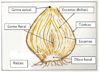 estrutura (certas plantas têm um bolbo de aspeto escamoso pois não têm túnica,