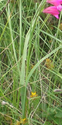 folhas, em roseta basal são eretas e firmes, sem pelos, de forma linear e com nervuras