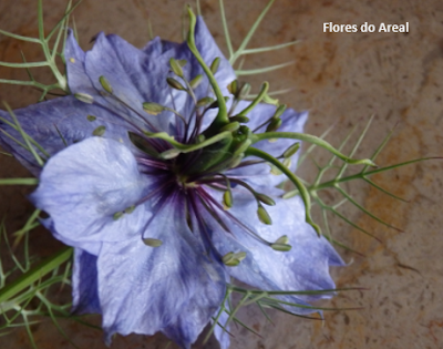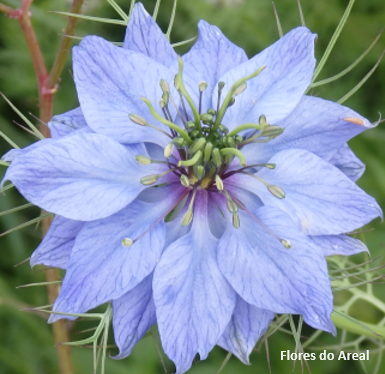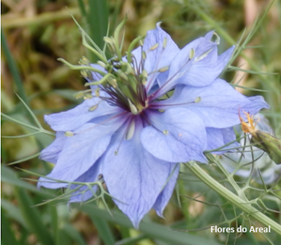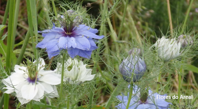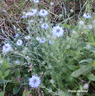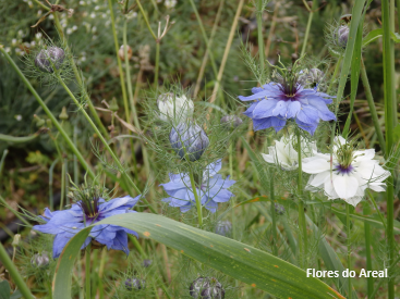 Nigella damascena é uma fascinante espécie anual que cresce de forma espontânea em campos cultivados, searas e pomares, terrenos baldios e beira dos caminhos, em solos pedregosos ou remexidos.