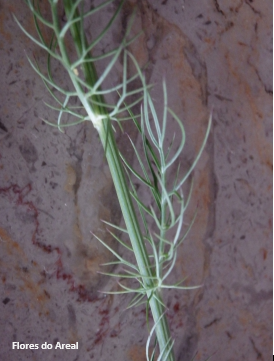 As longas folhas estão divididas em segmentos muito estreitos, quase lineares.