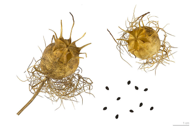 Fruto e sementes de Nigella damascena