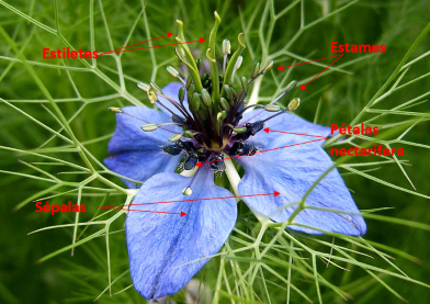 As flores de Nigella damascena partilham uma serie de características com outros membros do seu género no entanto, apresentam uma particularidade muito interessante que é a rara coexistência, nas populações naturais, de dois tipos morfológicos que resultam num dimorfismo da composição do perianto.