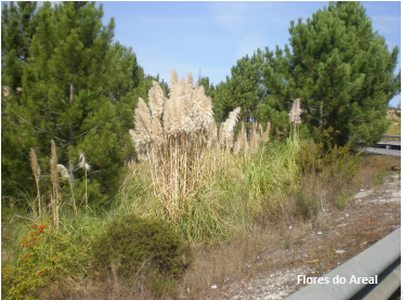 A Cortaderia selloana, vulgarmente chamada penachos ou erva-das-pampas, veio da América do sul. É uma gramínea de grande porte, rizomatosa e que é muito apreciada pelos seus penachos brancos. Tem crescimento vigoroso e as suas densas rosetas basais abafam o coberto vegetal autóctone. Nem sequer servem de alimento ou abrigo à fauna pois as suas folhas tem margens serrilhadas e cortantes. Os penachos produzem elevada quantidade de sementes as quais se espalham com o vento e germinam com grande eficácia. Nos últimos anos todos temos sido testemunhas da crescente expansão desta planta e a este ritmo receio bem que não fique palmo de terra por colonizar. A zona de Torres Vedras tem sido especialmente afetada mas não se veem medidas que ponham travão a esta expansão, antes pelo contrário, a expansão continua e todos os meses vemos novos exemplares. Esta planta forma rapidamente uma enorme touça que é resistente ao corte, ao fogo e aos químicos.