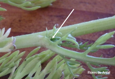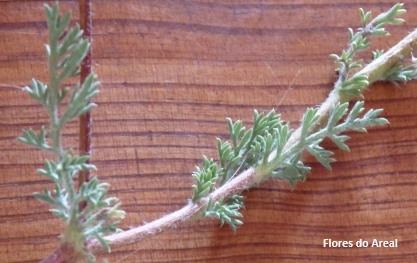 “pétalas” brancas, além das folhas finamente recortadas, pormenor este que é