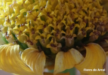 espécies semelhantes. As flores centrais são tubulosas, de cor amarela e estão
