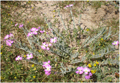 A Malcolmia littorea, de nome vulgar Goivinho-da-praia, é um arbusto baixinho com 10 a 40 cm de altura, perene, lenhoso mas só na base.
